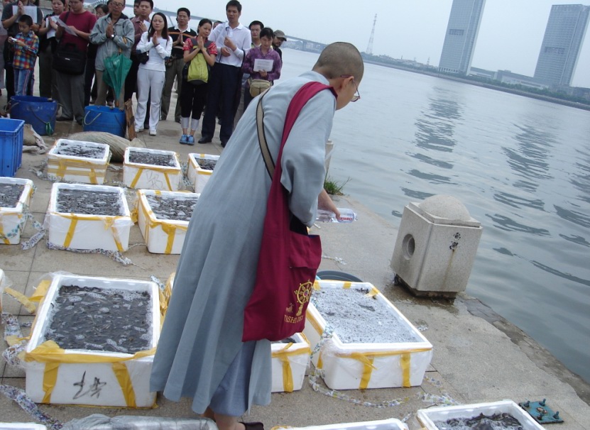 3.将此放生之功德回向十方三世佛菩萨!愿十方三宝慈悲加持,怜悯护念,并祈愿所放之众生,既放之后,永不遭遇网捕吞杀,获尽天年,速生净土!并愿捕生人等,回心向善,顿悟三世因果、及生佛心性平等无二之理、解冤解结,救世救生,发菩提心,行菩萨道!