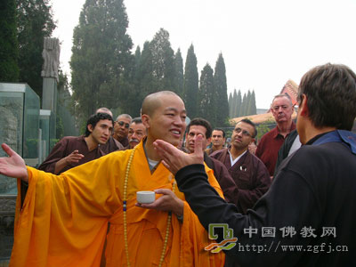 明海大和尚亲自为每位参访团员敬茶。这一天同时也袚定为“赵州禅茶纪念日”。
