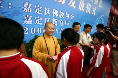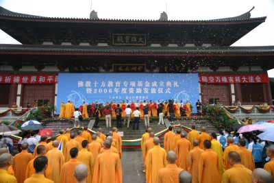 9月30日,在嘉定区南翔镇的云翔寺举行了隆重的基金成立典礼暨2006年度资助发放仪式。出席典礼的有中国佛教协会副会长、上海市佛教协会会长、上海玉佛寺方丈觉醒法师,世界佛教僧伽会副秘书长、印尼大丛山西禅寺方丈慧雄法师,上海佛教协会副会长、真如寺方丈妙灵长老,上海市佛教协会咨议委员会副主席德悟长老,嘉定区佛教协会会长、留云禅寺住持慧禅法师,嘉定区政协主席周关东先生,嘉定区委常委、区政协副主席、区委统战部部长张敏先生,嘉定区政府副区长夏以群女士,上海市民宗委副主任曹海红先生,上海市民宗委三处处长沈国强先生,嘉定区教育局局长毛长红先生等。此外,嘉定区各寺院的法师、居士和受助的学生、家长等近千人参加了本次活动。