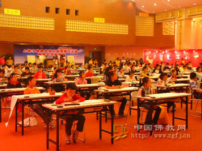 上海玉佛寺为了更好的推动书写经典,传承中华民族的文化精髓,并使其发扬光大。于2006年10月2日下午在玉佛寺觉群楼二楼多功能厅举办青少年佛教题材书法挥毫大赛。