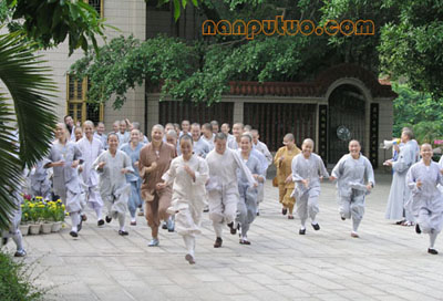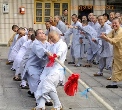 据南普陀在线报导:为丰富闽院女众部紫竹林寺学僧的课余生活,增强学僧的体能,营造一个积极向上的学习氛围,闽院女众部领导利用国庆假期组织全体学僧开展了别开生面的爬山、拔河比赛活动。通过此次活动,既锻炼了学僧的身体,又增强了班级的凝聚力,促进学僧以最佳的精神状态投入于学修中。这次比赛,充分达到了学院领导的预期目的。