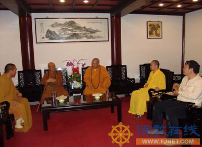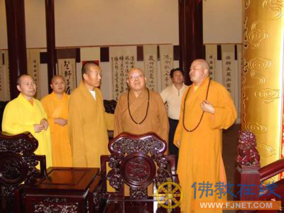 2006年10月22日应毗卢寺方丈传义法师邀请,美国洛杉矶法印寺开山祖印海法师于22日下午到访毗卢寺,陪同的有宁夏自治区佛教协会会长耀正法师。