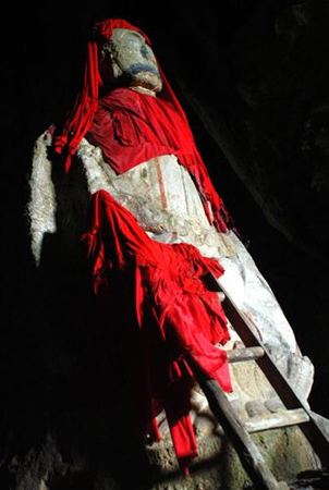 鐘乳石人造佛像 前天(二十四日),湖北省恩施清江考察队发现,在距湖北省利川市城区二十一公里的凉雾乡盘龙村的盘龙洞,有一座巨大钟乳石人造佛像。这是鄂西一带已发现的唯一一座钟乳石人造佛像,大约建造于宋元期间,这对于研究鄂渝宗教文化和佛教的传播路线很有价值。 |