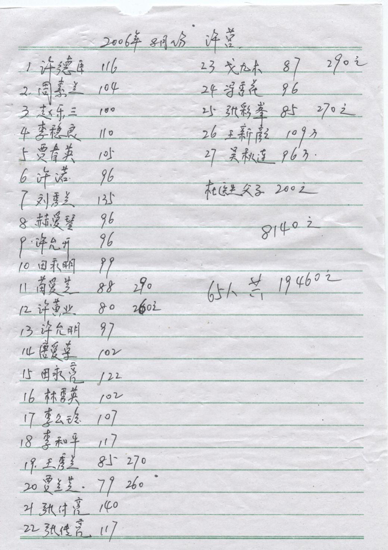 2006年10月4日下午2点钟,中国江西庐山东林寺护生会,在中秋佳节之际,为了让艾滋病病人过好团圆节日,发放了第5次念佛自养爱心捐款,共19460元。