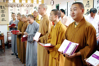 上午9时10分,厦门民宗局陈建德局长、蔡永华副局长、舒国成副局长、曾文瑛副局长、苏人登处长和钟晓波主任共同来到闽院书画展览室。闽院常务副院长界象法师、教务长传明法师、教导长达源法师以及郑永升老师等也到场同大家共同欣赏。民宗局四位局长亲自为获奖者颁奖。