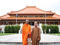 据人间社报道:柬埔寨Wat Mahamonotrey Pagoda南传法师Ly Phirom 9月26日在信徒带领下前往南天寺拜访,如持法师接待,介绍佛光山、海外道场弘法事迹。