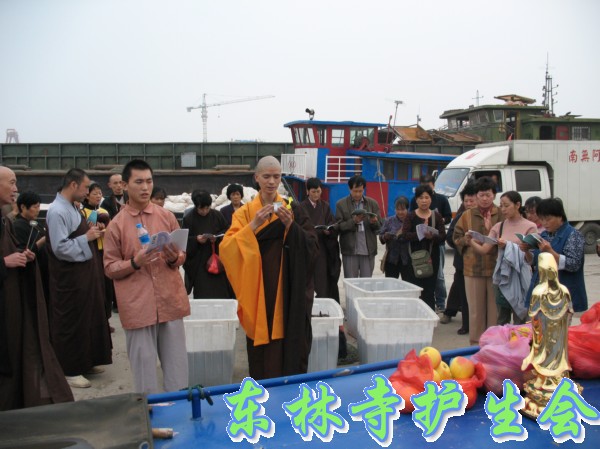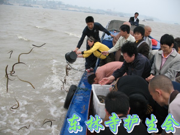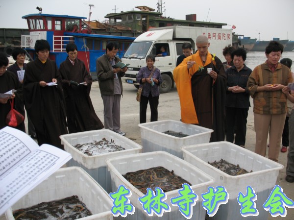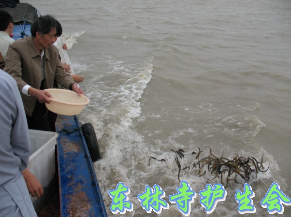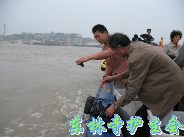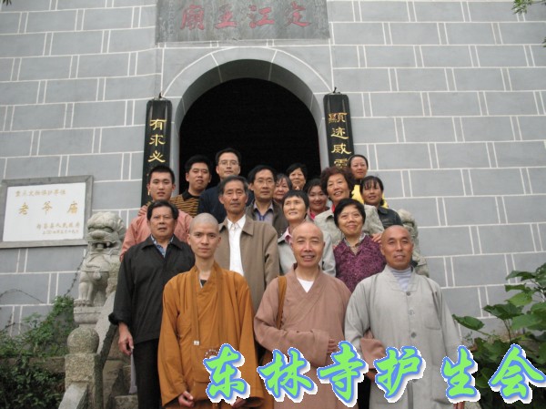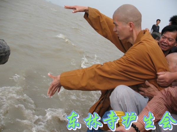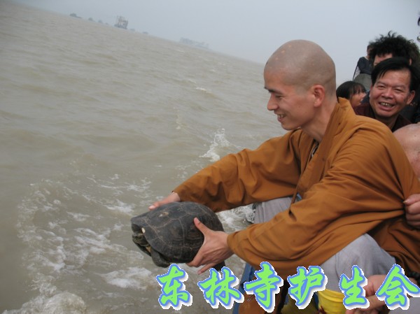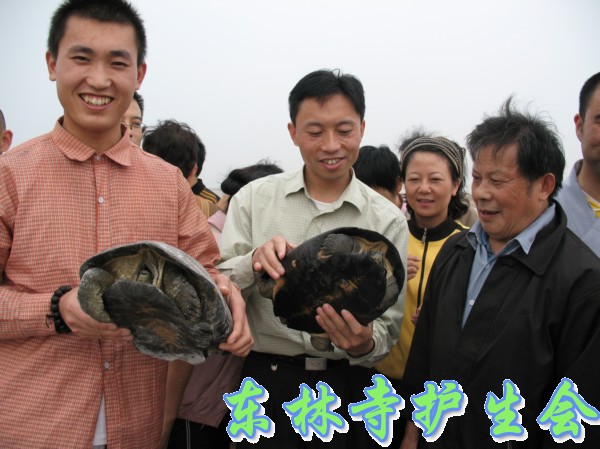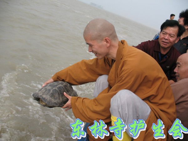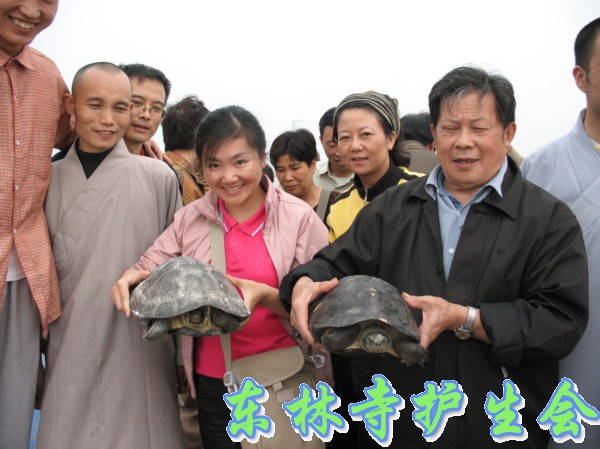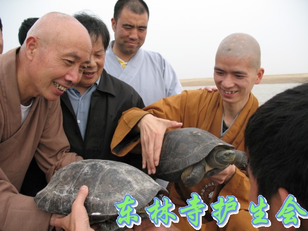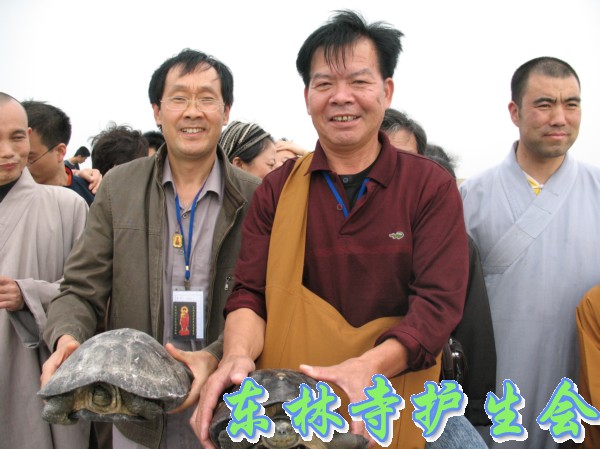 10月7日,东林寺护生会组织的一次大型的放生活动,其中有两只巨乌龟,不知道巨龟具属于哪种龟类,也不知道它们究竟有多大年龄,不过可以肯定,这两只巨龟年龄肯定很长很长,善根也非常深厚。8日将它们放到东林寺莲池,放生时法明法师还给给它们各取了法名,一个叫随缘,还有一个叫自在。随缘体长33cm,体宽26cm,龟甲厚度16cm,体重达10多斤;自在长33cm,宽22cm, 龟甲厚度16cm,体重达9斤多。
