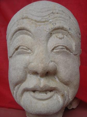挖掘出来的石雕佛头像
