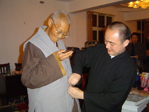 这位老师父正巧来兴教寺,他的桃源茅棚在户县,今晚送到的棉衣第一位就供养给这位宽道法师了。