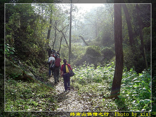 前面的大队伍都不见人影了,我走得很慢,总是落在最后。不过呢,走在后面也有好处,就是心一带我们从一片林中穿过,找到这个岩洞。这是一个无名岩洞,据说一般初来住山的法师都会先在这里落脚。