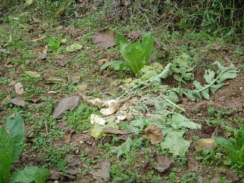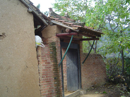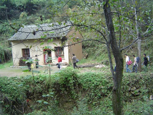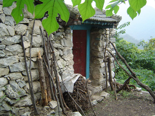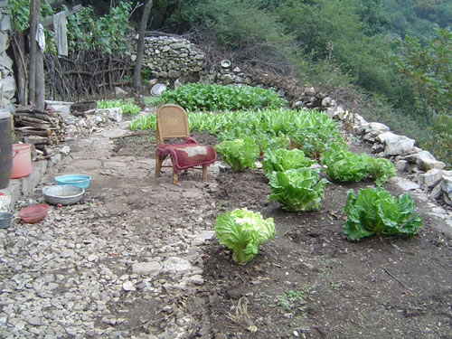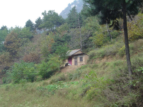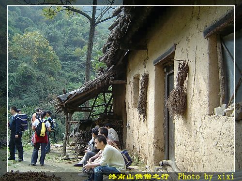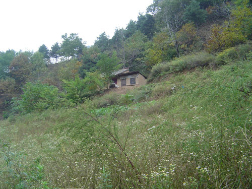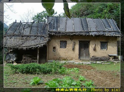 这个茅棚不知道叫什么名字,我们到的时候主人不在,院子里的种的菜长得很好,还有很多板栗壳。