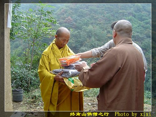 在紧张的分装供养物资后,兴教寺监院宽池法师向大家介绍终南山的情况,法师盛赞大家的发心,并祝活动圆满顺利,特委派心一居士负责活动的具体事宜,心一居士向大家简单介绍了终南山住山法师的情况,并介绍了三天的活动安排。嘱咐大家要用心体会这次寻访活动的意义。