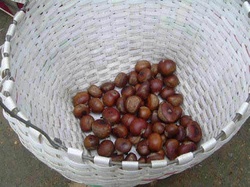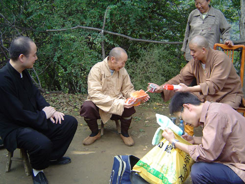 法师给大家拿出山中的板栗、核桃来招待大家。很香的栗子吃在口里,感恩在心。