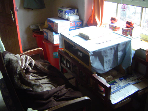 这座茅棚叫做不修茅棚,看到我们的到来,这里的居士热情给我们扛出两张床放在院里给大家坐。