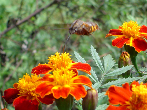 茅棚门口的鲜花都开得很欢,山中的蜜蜂很幸福啊!
