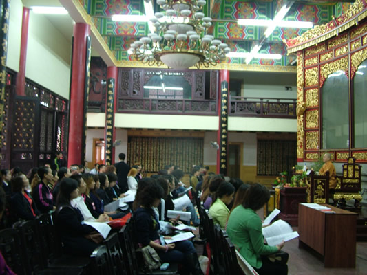 重庆佛教在线10月24日消息 据重庆华岩寺报道,10月24日,重庆华岩寺举行首届高级美容师“开启美丽心灵之旅”禅修活动。此次活动由华岩寺方丈道坚法师作为主讲导师,有100多位美容界的专业人士参加。这是继CEO、女企业家、心理分析师等禅修活动的又一个特色型心灵环保工程。