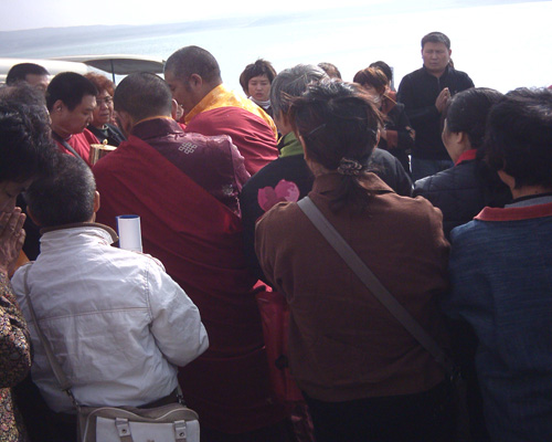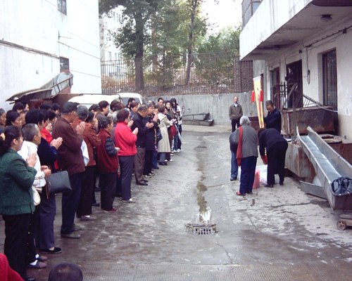 10月21日,上午11点。北园春水产批发市场。和往常一样,人来人往熙熙攘攘。市场里、一个开阔地上,人们不断的在汇集。合掌、念佛是这些老的、少的、男的、女的共同的动作。这样的放生活动已经坚持了好几年了,最初只是几个人,渐渐越来越多、越来越多。最后成了一种规律,每到周六,春夏秋冬、风雨无阻。