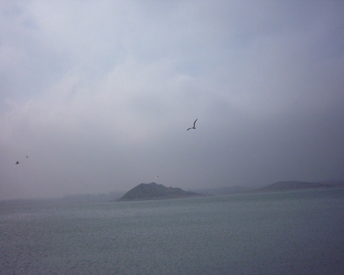 要不是秋风寒意逼人,这里真的让人流连。水,碧波荡漾;山,清秀含蓄;不知道名字的大鸟,上下飞舞。