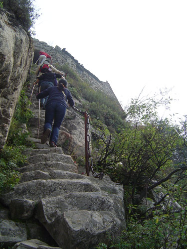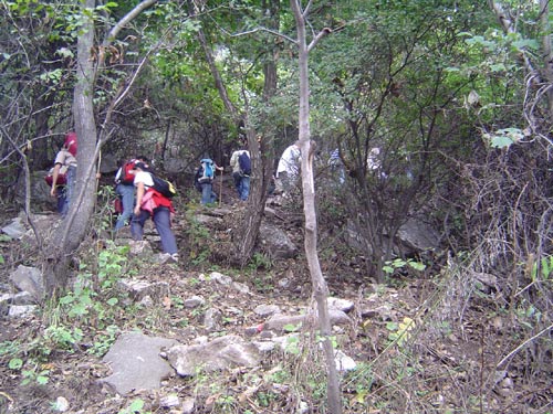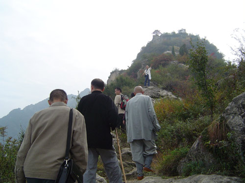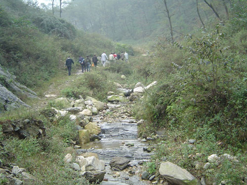 住在山后的传真尼师的寺院由《空谷幽兰》中的小茅棚已经发展成今天的“楞严寺”,由于正在修路,大家只能攀援而上了。
