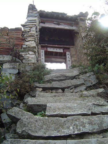 石梯上的兴庆寺山门,这里是嘉午台的绝顶处,当地人称“岱顶”。
