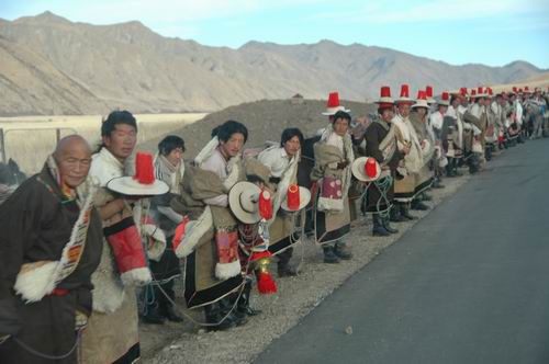 马队环绕着迎请车队,数万名藏民们欢呼声此起彼伏。