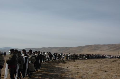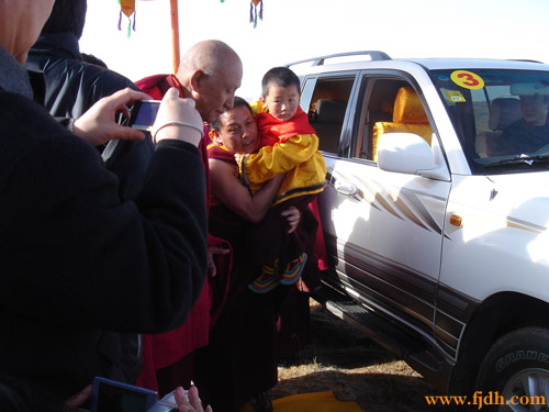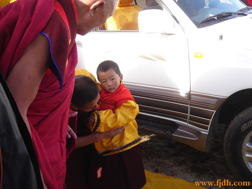 2006年11月11日清晨6:30分,迎请团前往甘肃科才乡寺院迎接贡唐仓活佛转世灵童。