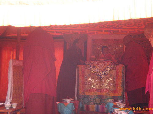11月12日清晨,迎接团将从琼泽滩出发到达拉卜楞宾馆,然后直达贡唐囊欠举行坐床大典。
