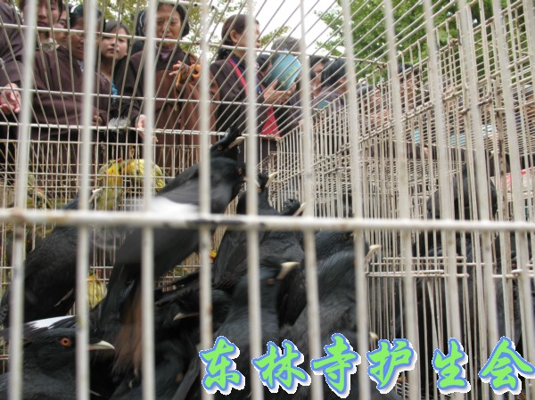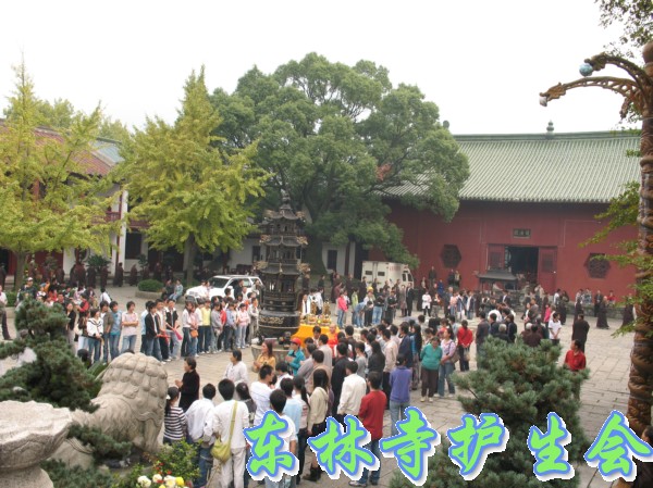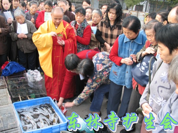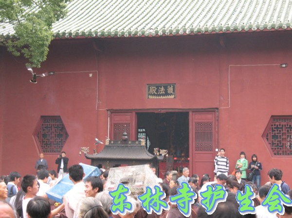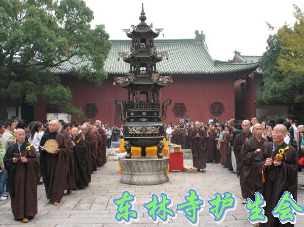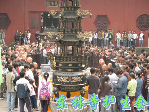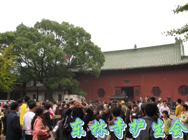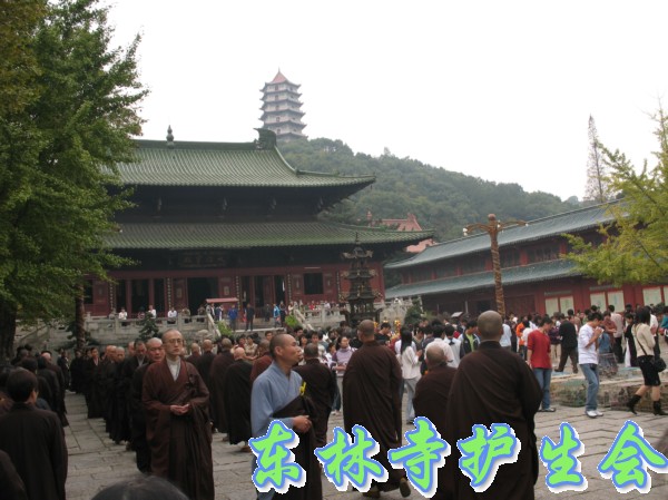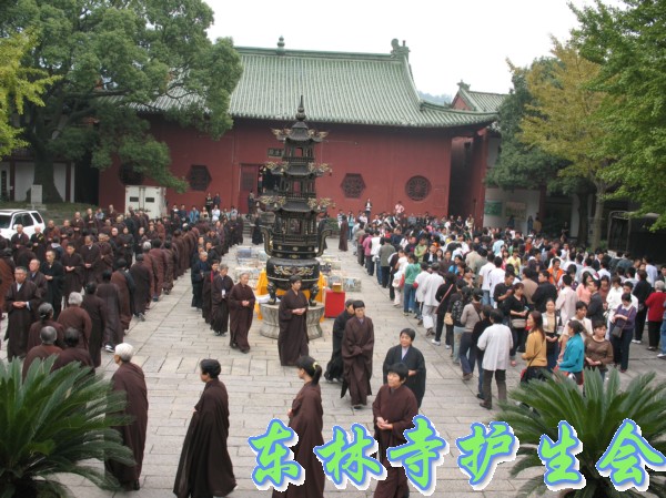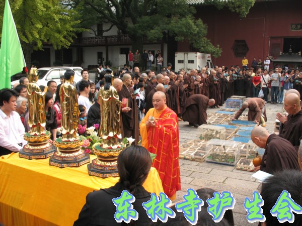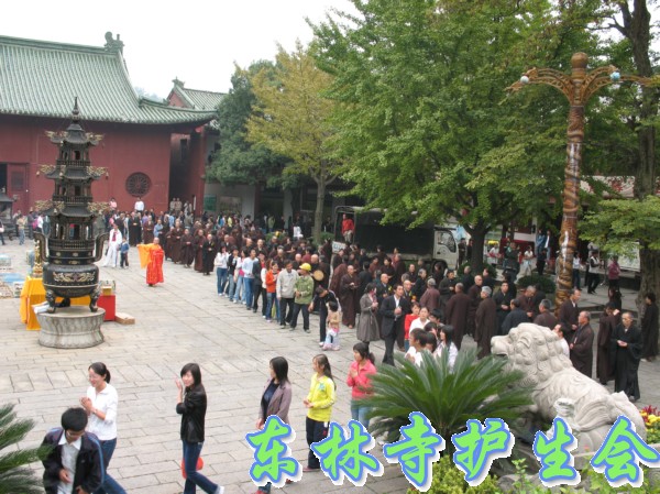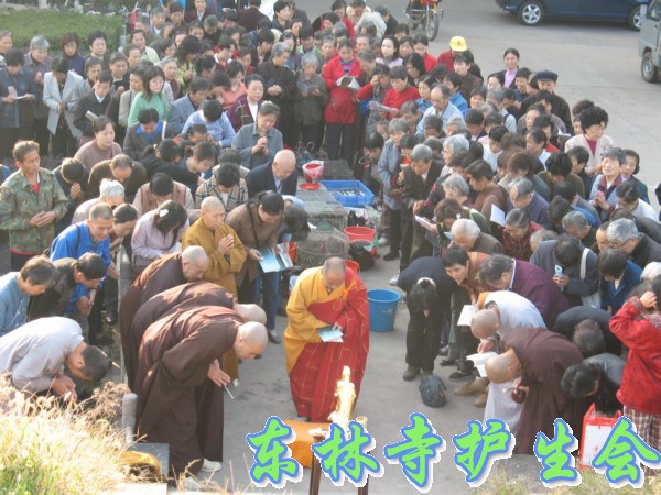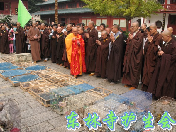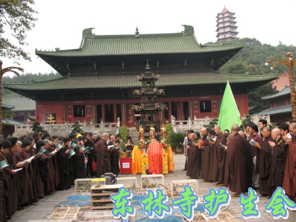2006年11月5日,东林寺护生会在寺院内举行大型放生活动,此次放生被救的全是鸟类,共有一万只。下午一点半,放生仪式在东林市广场举行,由于今天是十五,很多信众前来烧香拜佛;又逢星期天,很多学生来游玩。参加放生的四众弟子和游客共有一千人左右。放生仪式由觉海法师主持,大众念诵仪式声音非常洪亮,场面非常壮观。