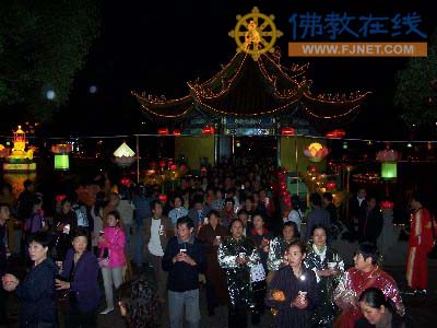 2000余名善信手捧象征光明和智慧的莲花宝灯传灯,默默许愿,缓缓绕行,由大圆通殿从东西两侧一直蔓延到普济寺外,绕着海印池,分别经过永寿桥和瑶池桥,然后从御碑亭折回并经八角水亭回到普济寺的大圆通殿。莲灯捧在手里,如兰似桂沁人心脾。看着那微弱的火焰,感受着掌心的温暖,人们的脸上慢慢浮现出温柔、宁静、虔诚的神色。凉风袭来,烛火摇曳,忽明忽暗,每一位捧灯的人都慌忙用手心呵护烛火,如同呵护对美好生活最真挚的向往。众人寄语“平安吉祥”、“合家安康”,祈祷国泰民安,希望能抛弃自己心中的万千烦恼,令心里充满智慧和光明。