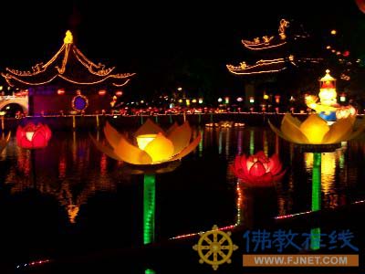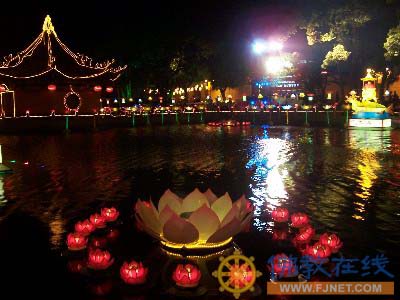 11月19日晚7时,“海天佛国”普陀山十二景之一的海印池周边“佛灯朗耀映娑婆,梵音谆谆醒迷津”。第四届中国普陀山南海观音文化节重要内容之一的“点亮心灯”传灯祈愿法会在渺渺梵音中拉开序幕。
