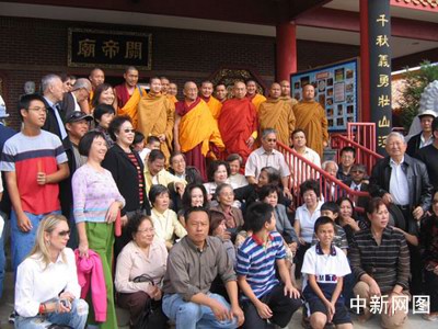 西藏法师应邀在美国最大关帝庙颂经说法