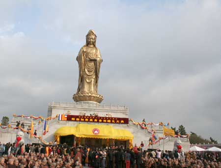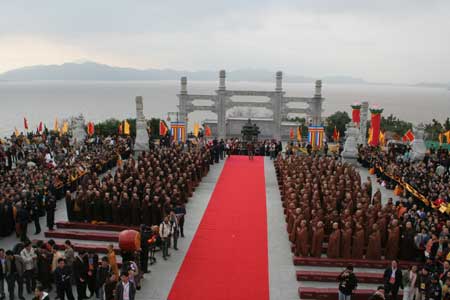 今天,海天佛国普陀山梵音缭绕,红烛高烧,尽显佛国琉璃世界升平气象;南海观音大佛前,僧尼云集,游人如织。上午9点,浙江省委常委、常务副省长章猛进宣布第四届中国普陀山南海观音文化节开幕。