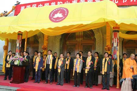 梁黎明说,作为观世音菩萨弘法道场和中国佛教四大名山之一,普陀山努力挖掘深厚的文化底蕴,生动演绎“新六和”理念,不断延续着千年文明,成功承办了举世瞩目的首届世界佛教论坛,成功打造了观音文化节的节庆品牌,并于本月3日喜获“中国十大人物类节庆”荣誉称号。相信本届观音文化节的成功举办,一定会充分展示普陀山的悠久历史和灿烂文化,也一定会充分展示海天佛国的禅意境界和独特魅力,让普陀山走向世界,让世界了解普陀山,为普陀山世界佛教圣地、国际旅游胜地和小康社区建设提供强大的精神动力和文化支撑。