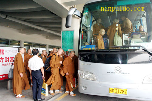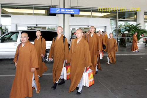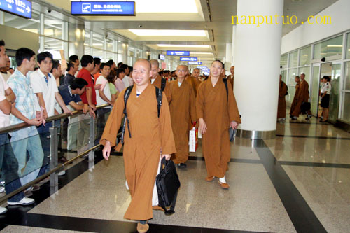 法务团一行在闽院教务长传明法师、南普陀寺书记德煌法师的带领下,僧装齐整、井然有序的走出机场。