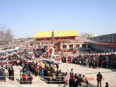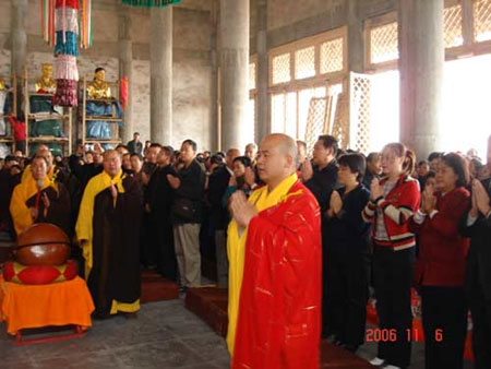 上午十时整,法会在清远悠扬的梵呗声中进行,庄严宏伟的大雄宝殿前面,彩幡飘扬,香烟缭绕,鼓乐齐鸣,12点钟,十六尊者铜像在众多信徒的迎请下进入大雄宝殿供奉,下午1点迎请法会圆满结束。