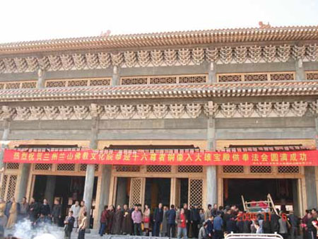 据陇原佛学网报道:2006年11月6日(农历九月十六日)甘肃兰州五泉山浚源寺及四众弟子迎请十六尊者像在兰州兰山佛教文化院供奉。四众弟子与社会各界万余人参加了此次法会,共沾法喜。法会由兰州市佛教协会副会长、兰州兰山佛教文化院管理委员会主任理因法师主持,圆满殊胜。此次迎奉的十六尊者像高3.5米、极为庄严,为铜质铸造。