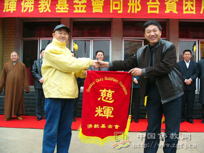 11月12日,香港慈辉佛教基金会向邢台地区贫困户捐助御冬物资仪式在邢台宾馆举行。本次捐助棉被达二千余条,总耗资15万元。慈辉干士林子钊、陆战明居士代表参加了本次捐赠仪式。
