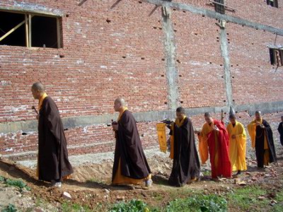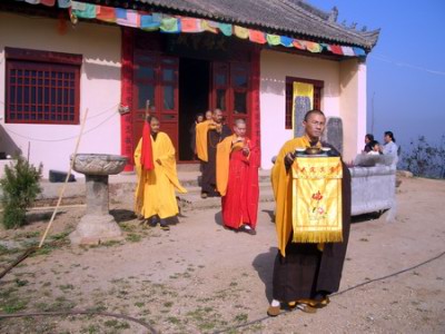 据佛子论坛报道:11月4日,长安护国道安寺举行简朴的开山楼封顶祈福法会,长安终南山佛教协会名誉会长、长安护国兴教寺方丈、长安护国道安寺法主和尚常明长老亲莅法会,长安延福寺住持宽度法师应邀出席并主持祈福法会。当地村委会领导也应邀参加,道安寺住持宽严法师在举行完法会后应邀向大家介绍了半年来道安寺的建设情况,并向大家展望了道安寺的未来设想。当日秋高气爽,阳光明媚,近100多人参加了封顶祈福法会。据悉,道安寺今年8月18日举行山门奠基祈福法会以来,日夜兼程紧张施工,至今日的一座建筑开山楼封顶,不到三个月。