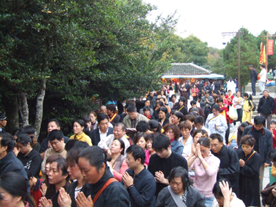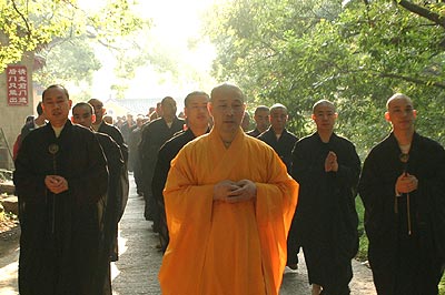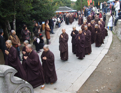 11月21日,第四届中国普陀山南海观音文化节“僧尼礼佛顶、万信齐朝拜”法会举行。中国佛教协会副会长、普陀山全山方丈戒忍大和尚率佛协所属各寺院僧尼、居士及来山香游客朝拜佛顶山。