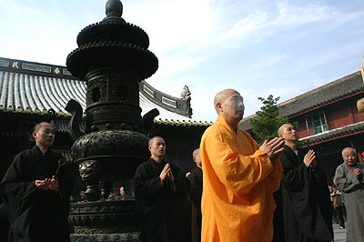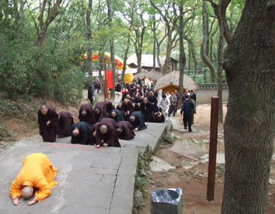 僧众及香客在戒忍大和尚带领下开始朝拜