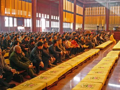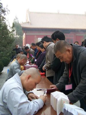 中午12:30,由柏林禅寺监院常照法师主持,千余人在万佛楼皈依佛法僧三宝,正式成为在家佛弟子。常照法师开示了三皈依和五戒的内涵及其对于人生的意义,希望大众在日常生活中精进修行,多积福德资粮。