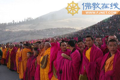 当日清晨,藏传佛教格鲁派六大寺院之一的拉卜楞寺沉浸在一派吉祥喜庆的节日气氛中,数万名信众身穿节日的盛装,手捧洁白的哈达,一大早就来到了贡唐佛塔前的马路边虔诚恭候第七世贡唐仓活佛的到来。上午9时,按照拉卜楞寺传统仪轨,在藏族马队和高僧大德的护送下,第七世贡唐仓活佛由拉卜楞寺宾馆乘轿,缓缓走过沿途夹道恭迎的信众队伍。此时,人声鼎沸,法乐齐奏,数百名喇嘛们诵经祈祷,低沉雄浑的梵音回荡在拉卜楞寺的上空。