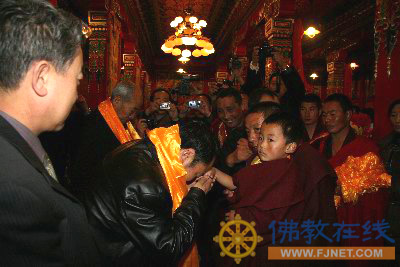 今天,我们为第六世贡唐仓活佛的转世灵童举行隆重盛大的坐床仪式,实在是可喜可贺!它再次证明,党和政府对藏传佛教信仰的充分尊重与切实保护。同时,也体现了党和国家的宗教信仰自由政策得到了认真的贯彻与落实,表明了党和政府对藏传佛教事业的高度重视和真切关怀。
