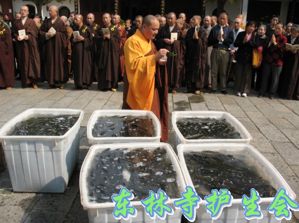 放生仪式结束后,觉海法师开示大家是佛弟子,参加任何活动都要有次序。给别人做榜样。