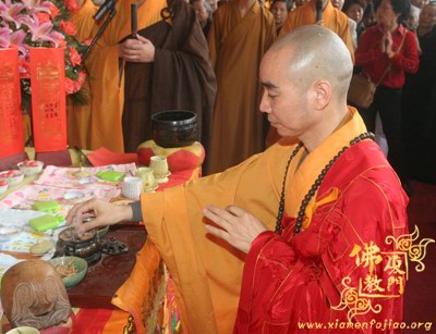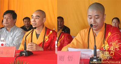 开幕式上,诚信法师对厦门市局主管部门领导的莅临表示热烈欢迎,对与会的法师及护法居士的鼎力护持表示感谢。则悟法师代表厦门市佛教协会在法上致辞,并祝道场法务兴旺,海众安和。