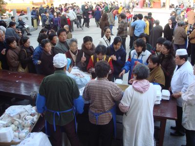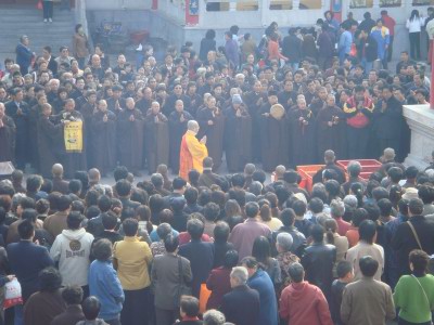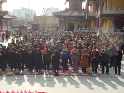 2006年11月9日是农历九月十九日观世音菩萨出家日,天津荐福观音寺全天举行了隆重的祝圣法会,诵持《观世音菩萨普门品》、举行大放生仪式、下午传授三皈五戒并启建众姓普佛道场。有来自天津及周遍省市的居士善信6000余人随喜了全天的法会,700人接受了三皈,大家感受到观音菩萨的慈悲加持、法喜充满!