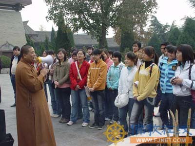 实习期间,师生们参观了法门寺、法门寺佛学院、法门寺珍宝馆。为了深入体验和了解出家人的生活,师生们和法门寺僧众一起过堂,参禅,听佛学讲座。大家都感到这此来法门寺不许此行,懂得了与人和谐的方法和报答国家、父母、师长、众生、三宝的恩德。