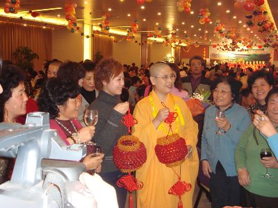 据荐福佛教网报道:2006年11月11日,在天津财富豪为大酒店举行了荐福观音寺第六届护法居士联谊会。来自天津、北京、河北、上海、吉林的护法居士600余人与荐福观音寺僧团一起交流佛法,增进法缘道谊,提高寺院凝聚力,加大弘法力度。住持妙贤法师发表了热情洋溢的讲话,天津弘一佛乐演唱团还表演了精彩纷呈的节目。