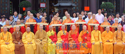 畅怀长老、圣怀长老和融灵长老等香港著名大德出席担任“证明师”,中国佛教协会副会长兼秘书长学诚法师亲率观礼团莅港出席大典,并向觉光长老赠送纪念品。来自各地的诸山长老和护法信众千余人出席了传法大典,传法仪式简单而隆重,场面庄严殊胜,秩序井然。