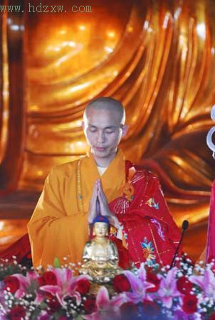 26日上午8点半,少林僧人和各地居士排成两排,恭候方丈进殿。9点,庆典正式开始,常定法师在演武堂前,全国政协常委、政协民宗委副主任、中国佛教协会副会长圣辉法师给常定法师送座,随后,诸位高僧为常定法师送位、送挂珠。接着,钟鼓起鸣,常定法师手拿如意缓缓向大雄宝殿前行,前后都有侍者护送。